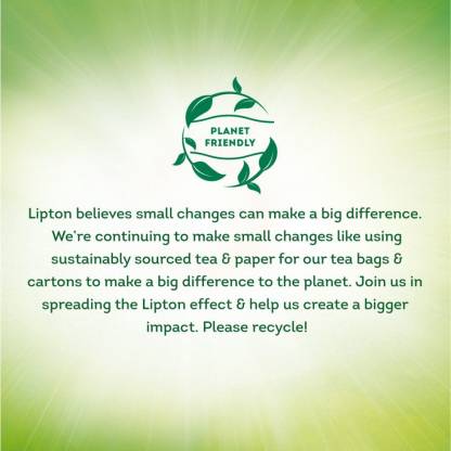 It's not just a cup of tea, its therapy - One Sip at a Time. Lipton Green Tea is not just a regular cup of chai, we believe it's therapy for your body. Wake up to a morning cup of hot Lipton green tea and feel how it leaves you feeling light and active. Awaken your senses - one sip at a time. Lipton Green Tea Bags in Honey Lemon Flavor have this goodness. Choose Lipton Green Tea Honey Lemon as your go-to beverage during the day. Buy Now! Magic of Green Tea Green tea is produced when freshly plucked leaves are heated, rolled/cut and then dried. The catechins in the fresh leaves are preserved during the green tea process, making green tea rich in catechins. Also, green tea is typically drunk without milk and sugar and hence gives zero calories as compared to the ordinary chai made with milk and sugar. Available in a Range of Flavors Lipton offers a range of different flavours to ensure that you are offered variety and enjoyment while drinking tea. Lipton flavours some of its teas with added natural flavours and no artificial flavours are used. You may try Lipton Green tea in Pure & Light (unflavored), Tulsi Natura, Honey & Lemon and Lemon Zest flavors as well, available in pack sizes of 10s and 25s Tea bags. Next best to Water Brewed, Unsweetened Lipton Green Tea being 99.5% water is a great way to meet your daily required fluid intake. Staying hydrated is essential to ensure bodily functions are carried out efficiently. General Brand Lipton Type Green Tea Model Name Pure & Light Quantity 100 Bags Pack Of 1 Tea Form Tea Bag Flavor Plain Organic No Container Type Box Maximum Shelf Life 15 Months Nutrient Content NA Ingredients NA Additives NA Important Note Product information provided by the seller on the Website is not exhaustive, please read the label on the physical product carefully for complete information provided by the manufacturer. For additional information, please contact the manufacturer.